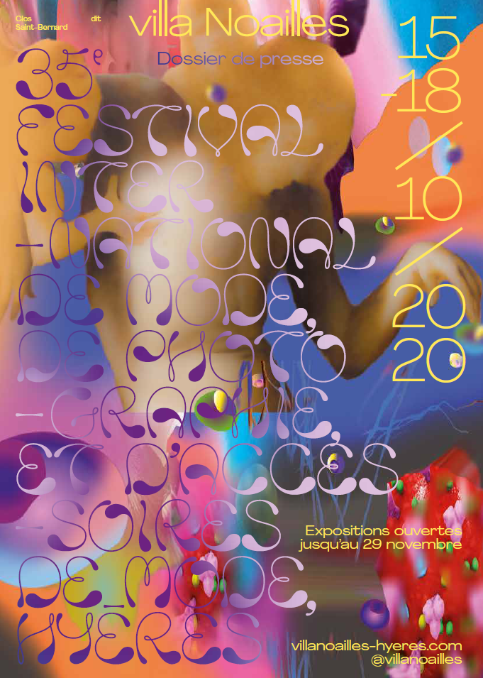 La 35e édition du Festival de Hyères se tiendra du jeudi 15 au dimanche 18 octobre 2020 à la villa Noailles. Au programme : expositions, ateliers, concerts, conférences, danse, performances mais également les concours photographie (Grand Prix du jury photographie, Prix de la photographie American Vintage), mode (Grand prix du jury Première Vision, Prix Chloé, Prix 19M des métiers d’art de Chanel) et accessoires de mode (Grand prix du jury accessoires de mode, Prix Hermès des accessoires de mode).
