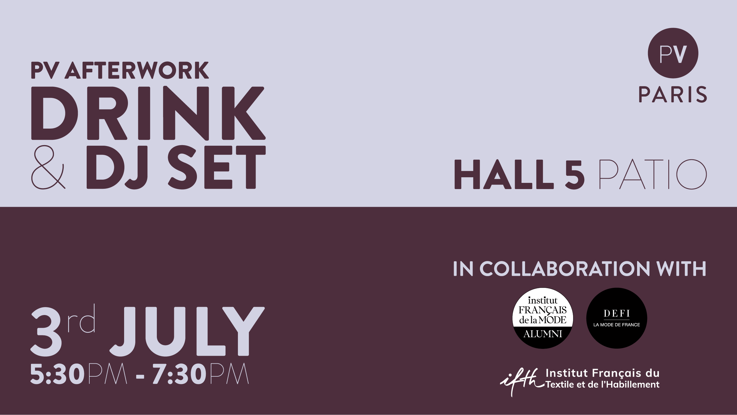 Cet afterwork sera l’occasion de partager un verre et de découvrir les actions des trois organisations au bénéfice des entreprises de la filière. L’évènement est ouvert à tous les visiteurs de Première Vision. Pour récupérer votre badge, cliquez ici.