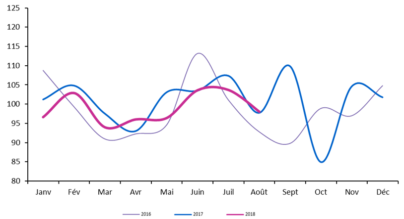 Les chiffres d’affaires des distributeurs ont enregistré une légère hausse au mois d’août 2018 : + 0,2 % en valeur par rapport à la référence élevée d’août 2017. Pour rappel, la référence d’août 2017 s’était inscrite en forte hausse par rapport à août 2016 (+ 4,8 %).