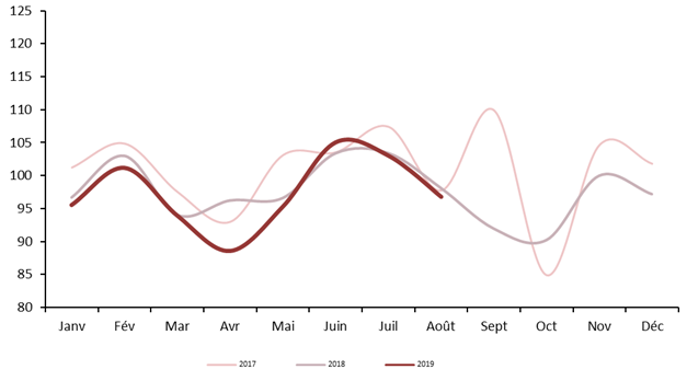 Au total, pour les huit premiers mois de l’année 2019, le bilan des ventes affiche un recul de 1,2 % en valeur par rapport à la période correspondante de 2018.