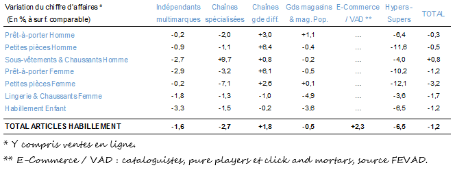 Les chaînes grande diffusion ont bénéficié de la meilleure animation commerciale avec une hausse des ventes de 4,6 %, tandis que les indépendants multimarques ont, à l’inverse, accusé un recul de 3,7 %.