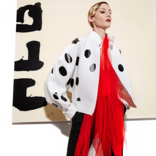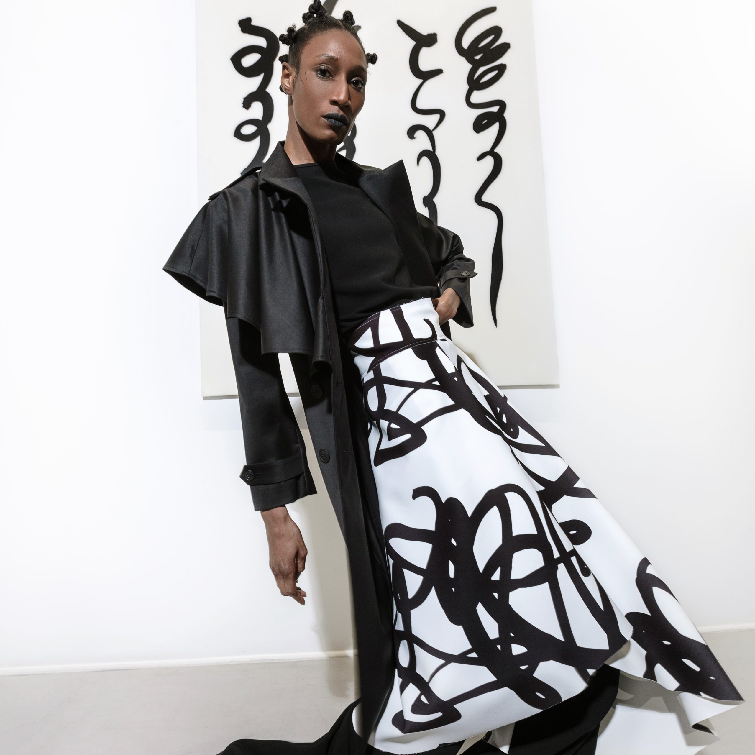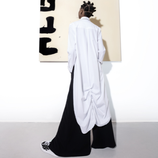 l’image du Grand Paris : confiante et ambitieuse, autant à l’aise en se baladant dans des quartiers de banlieue, qu’en poussant les portes de galeries d’art parisiennes. Les vêtements MOSSI sont à la fois amples et travaillés, pour laisser à cette femme sa liberté de mouvement, tout en créant des silhouettes architecturales.