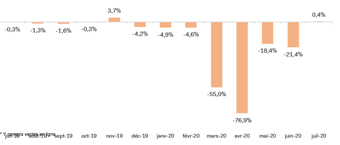Juillet 2020 : première hausse des ventes depuis novembre 2019