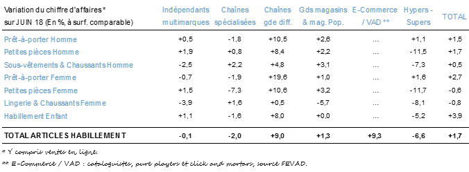Les résultats du sixième mois de l’année sont très contrastés. Ils sont compris entre une croissance des ventes de 9,3 % pour la Vente à distance et un recul de 6,6 % pour les Hypers-supermarchés.