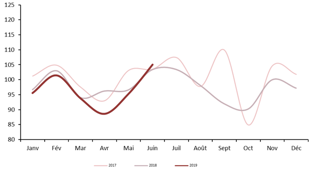 Cumul en valeur janvier – juin 2019 / janvier – juin 2018