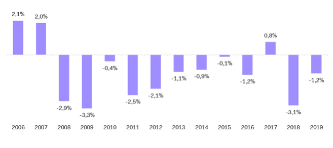 Pour le premier trimestre de l’année 2020, les chiffres d’affaires des distributeurs ont enregistré un retrait de 17,3 % en valeur par rapport à la même période de 2019. Les chiffres d’affaires des magasins ont subi une baisse de 18,7 %, tandis que les ventes en ligne ont relativement mieux résisté (- 6,0 %).
