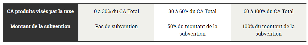 Ensuite, il faut regarder le CA des produits visés par la taxe pour constater du montant exacte de la subvention :