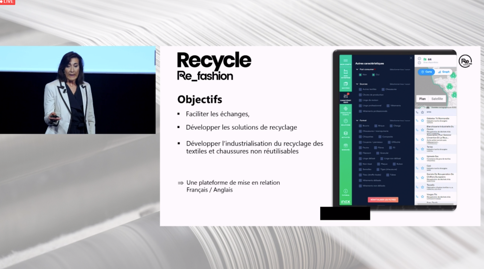 C’est lors du Refashion Day que l’organisme a lancé sa nouvelle plateforme de mises en relation « Recycle ». Cette dernière est née avec l’objectif de faciliter les échanges ainsi que de développer des solutions de recyclage et d’industrialisation du recyclage des textiles et chaussures non réutilisables. Les utilisateurs cœurs de cible de la plateforme sont les opérateurs de tri, les transformateurs de matières et les industries clientes de matériaux issus du recyclage. L’inscription est gratuite mais soumise à l’approbation de Refashion afin de garantir des contacts qualifiés.