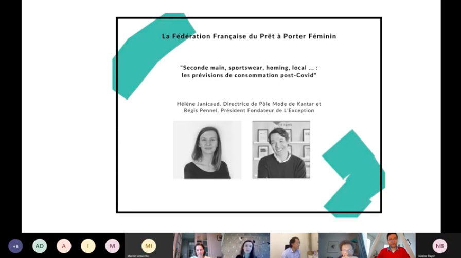 La Fédération Française du Prêt à Porter Féminin organisait ce 11 décembre dernier un webinaire sur les prévisions de consommation post covid avec Hélène Janicaud, directrice du Pôle Mode de Kantar et Régis Pennel, président fondateur de l’Exception. Hélène Janicaud a présenté les résultats d’une analyse Kantar réalisée à la suite du premier confinement et Régis Pennel a partagé son expérience en tant que directeur de concept-store physique et online. Le replay est disponible sur le site de la Fédération Française du Prêt à Porter Féminin.