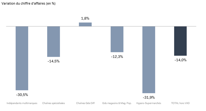 Selon les différents circuits de distribution, les résultats sont très contrastés. Les grands magasins (magasins populaires compris) ont bénéficié en janvier de la meilleure orientation (+ 1,7 %). A l’inverse, les hypers et supermarchés ont subi un recul des ventes de 9,1 %.