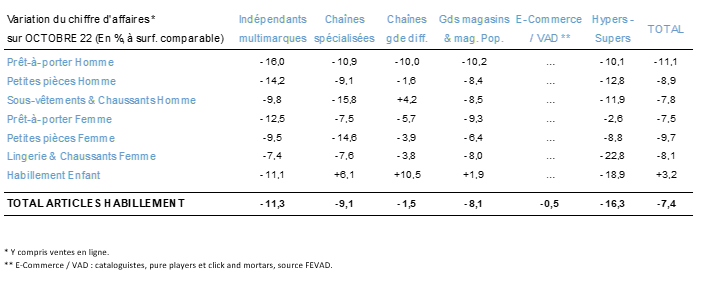 Évolutions mensuelles des ventes habillement d’octobre 2022 à octobre 2023