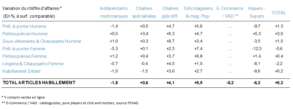 Évolution des ventes d’habillement par circuit janvier-septembre 2023 / janvier-septembre 2019