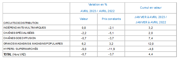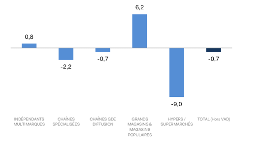 Hormis les grands magasins (magasins populaires inclus) et les indépendants multimarques, tous les circuits de distribution ont subi une baisse de leur activité commerciale.