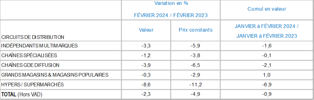 RÉSULTATS PROVISOIRES DU MOIS DE FÉVRIER 2024 : RECUL DES VENTES DE 2,3 % PAR RAPPORT À FÉVRIER 2023