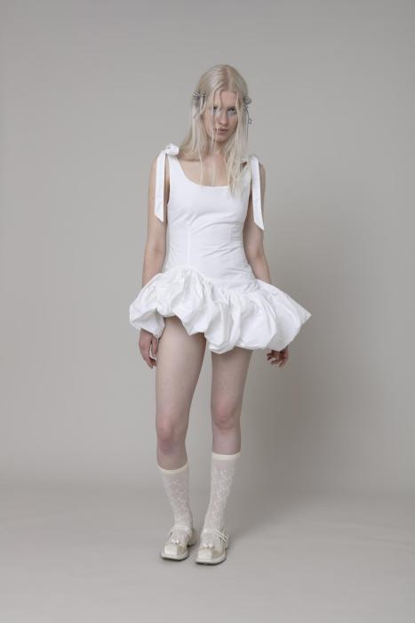 Diplômée de l’École de la Chambre Syndicale de la Couture Parisienne, Lucille Thièvre fait ses gammes chez Hermès puis Givenchy. Elle fonde sa marque éponyme en 2021. La même année, elle est finaliste du Festival International de Mode de Hyères. La créatrice mêle un vestiaire sensible et authentique à une vision durable et éthique. Elle évolue dans l’écosystème créatif des Ateliers du Wonder à Paris, où l’art, la musique et le savoir-faire fusionnent pour inspirer ses créations uniques. Chaque saison, elle démontre son amour pour le jersey, empruntant au vocabulaire du maillot de bain pour sculpter le corps, le drapé de viscose brillante, et propose des pièces iconiques en denim.