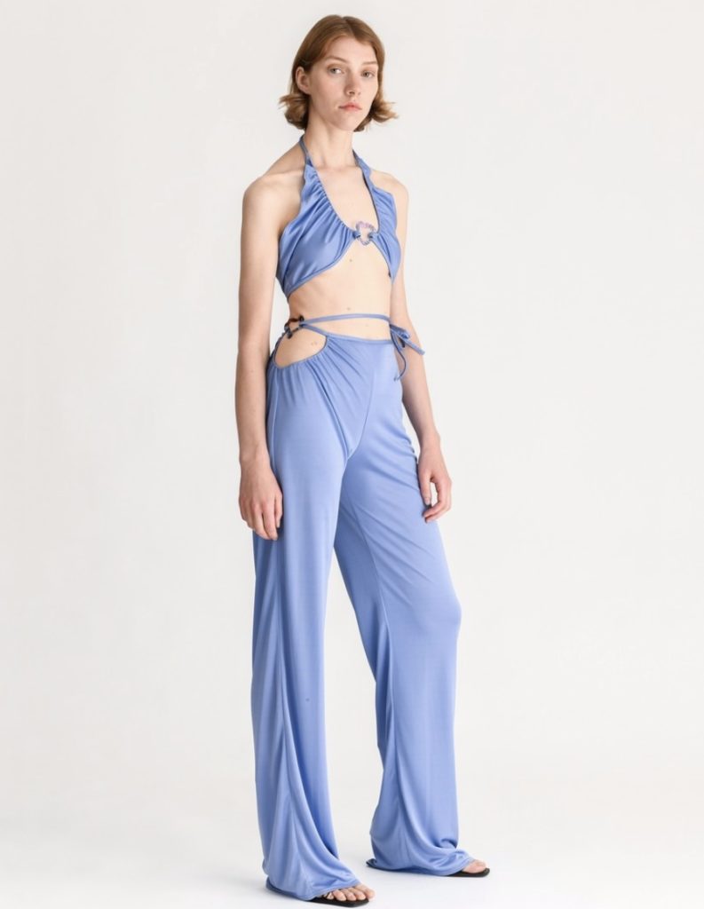Florentina Leitner combine de manière ludique une garde-robe chic avec des détails girly. Dans ses collections, elle embrasse ses racines autrichiennes et la Belgique, où elle s’est installée après avoir étudié à l’Académie royale des beaux-arts d’Anvers et travaillé pour Dries Van Noten. Déjà connue pour ses imprimés 3D et ses fleurs, la marque fondée en 2022 produit ses collections dans de petites usines artisanales en Italie.
