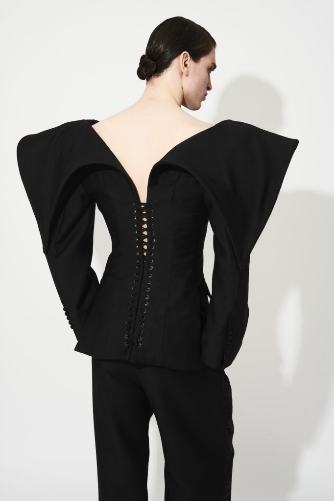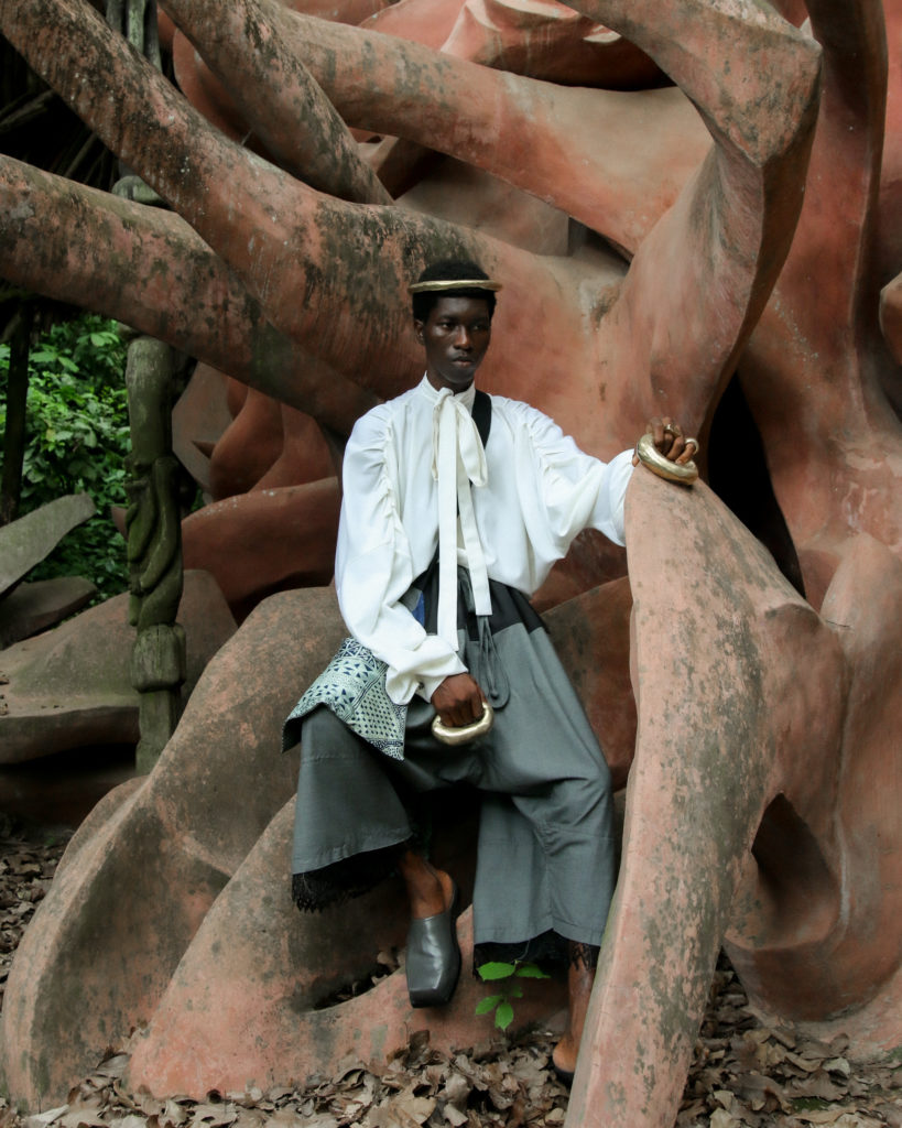 Lagos Space Programme est un label de design fondé par Adeju Thompson. Il collabore de façon multidisciplinaire avec des artistes et des artisans locaux pour revisiter la culture africaine en proposant de nouvelles façons de comprendre la beauté. Il revendique une mode non genrée, avec une production locale justement rémunérée. Nouveau lauréat 2023 de l’International Woolmark Prize, ses pièces ont été exposées dans des musées et il avait été demi-finaliste du Prix LVMH en 2021.