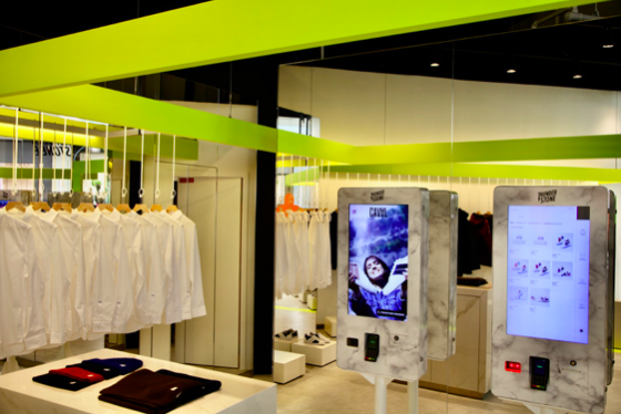 Vitrine de la solution Thunderstone, le concept store lyonnais est un espace moderne et épuré conçu comme un showroom : les produits exposés ne sont pas destinés à être vendus mais essayés puis commandés sur les bornes. C’est Régis Pennel, le créateur de l’Exception, qui assure la curation des marques présentes : 5 à 6 marques sont ainsi sélectionnées tous les 3 mois et des éditions limitées et collaborations inédites sont également proposées.