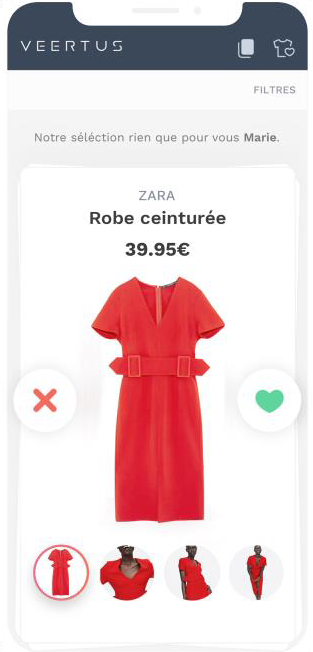 « Nous utilisons ce qu’on appelle du web scraping ou du crawling : cela consiste à aspirer le contenu des sites e-commerce des marques. C’est une solution qui ne nécessite pas d’investissement particulier de la part des marques puisque nous avons simplement besoin de leur accord pour accéder à leur site e-commerce. C’est très facile, très plug and play. Le deuxième avantage, c’est que nous pouvons également le mettre à jour de manière quasi-immédiate, nous pouvons donc accompagner des fast fashionners. Nous sommes aujourd’hui quatre opérationnels sur Veertus et nous avons des partenaires avec qui nous faisons beaucoup de développement : il y a à peu près une dizaine de personnes qui travaillent quasi-quotidiennement sur notre projet. Pour l’intelligence artificielle, il y a une partie externe, cela a été notre choix de travailler avec des organisations qui savaient très bien le faire et que nous avons benchmarkées. »